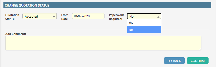 The Paperwork Required Status can now also be updated when updating the Quotation Status of an appointment.