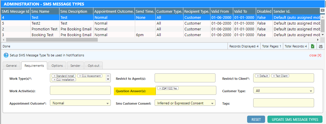 To set this up in the SMS Message Type Menu: