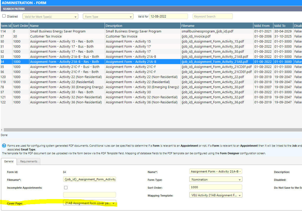 Cover pages can be created and mapped using the form designer in the same way that traditional forms are created, however they are managed from a new screen which can be accessed via Forms Form cover pages