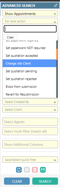 Use the ‘Change Job Client’ option from within the ‘Job Actions’ tab within a Job. (single job)