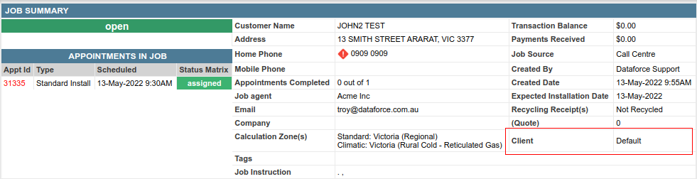 Having the Client attribute on the customer record meant that all Jobs belonging to the same customer would inherit the same Client.