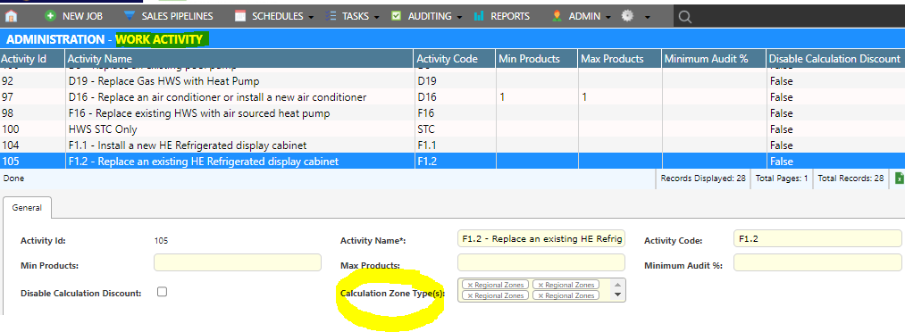 We have removed the Calculation Zone Types field from the Product Register and moved it to the ‘Activity’.
