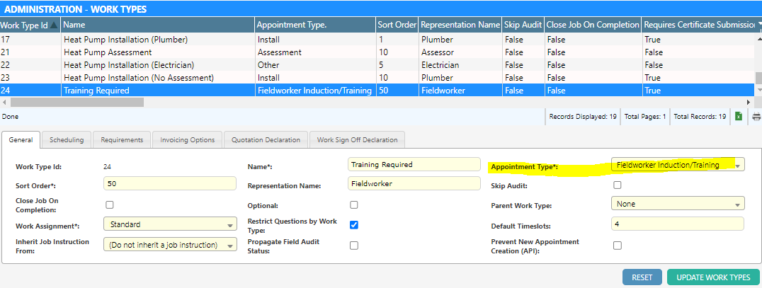 We have added a new option under Appointment Type in the Work Type register called Fieldworker Induction/Training.