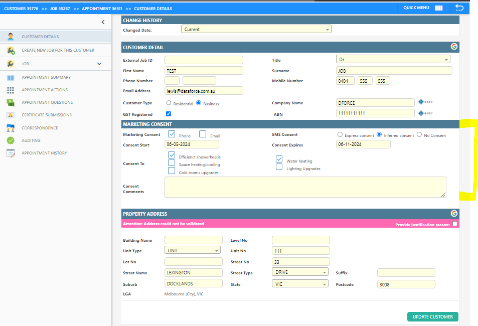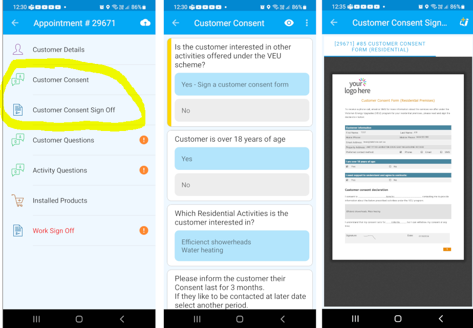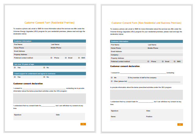 Two new built-in forms have been added for capturing a signed customer consent declaration. (Residential and Non-Residential versions).