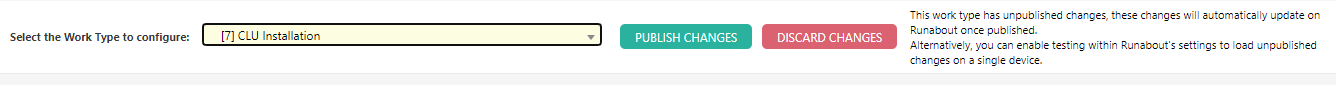 When changes are made to the work type Runabout menus, there is the option to publish the changes or test them.