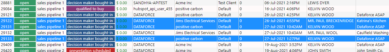- Select any jobs that you wish to change the Sales Pipeline for by holding the CTRL key on your keyboard and left-clicking the jobs