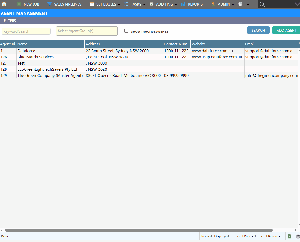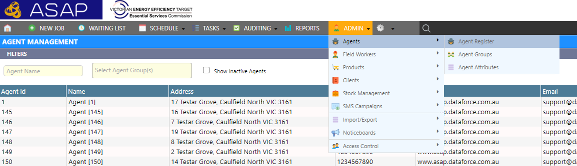 - Open the Agent Management screen by clicking Admin Agents Agent Register.
