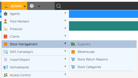 Open the Supplier screen by clicking Admin Stock Management Suppliers.