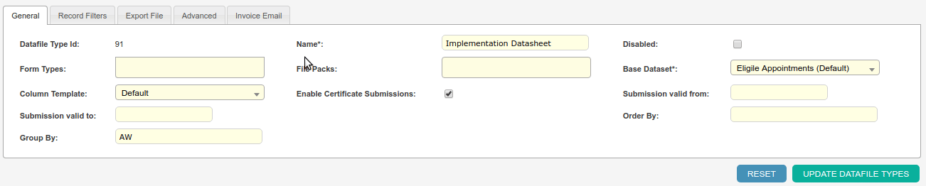 | Base Dataset | Using the default option ‘Eligible Appointments’ has the file return appointments found using the configured filters. The other option ‘Non Eligible Appointment’ will return those outside the filters’ |