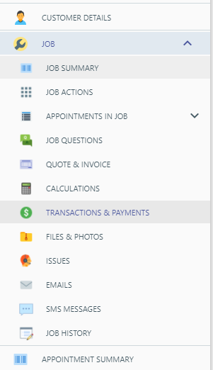 Access the Transactions & Payments menu for that job