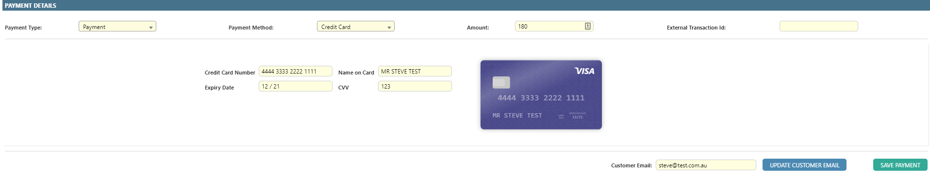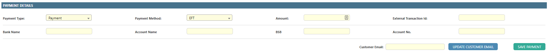 | Customer Email | The customer’s current email - field, provided for convenience to ensure transaction email (if configured) will be emailed to correct address. |