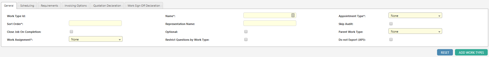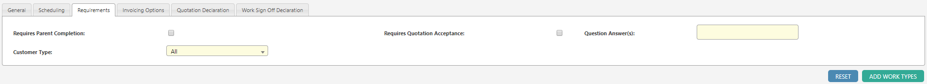 | Customer Type | A job’s customer type that must be selected before this work type can be created |