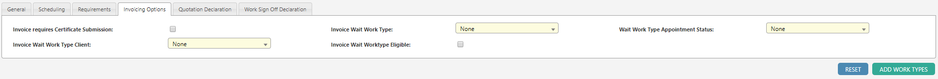 | Invoice Wait Work Type | Invoice eligible only after the selected work type has a status matching ‘Wait Work Type Appointment Status’ |