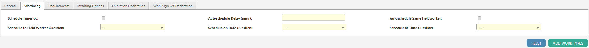 | Schedule at Time Question | The question in the parent appointment which provides the time to automatically schedule the appointment of this work type to |