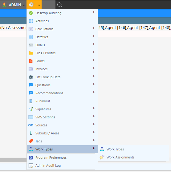 - Open the Work Type Management screen by selecting Admin Advanced Configuration [L - Z] Work Types